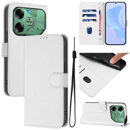 Funda de Piel Sintética con Cordón para Tecno Pova 6 4G (Blanco)