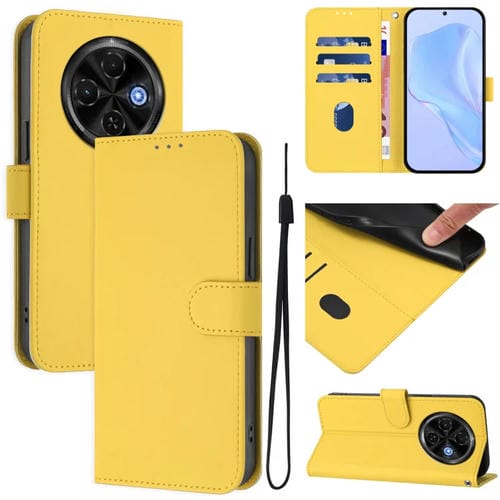 Funda de Piel para Tecno Spark 30C 5G y Pop 9 5G con Textura y Cordón (Amarillo Limón)