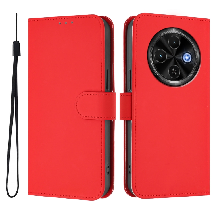 Funda de Piel Sintética con Cordón para Tecno Spark 30C 5G y Pop 9 5G (Rojo)