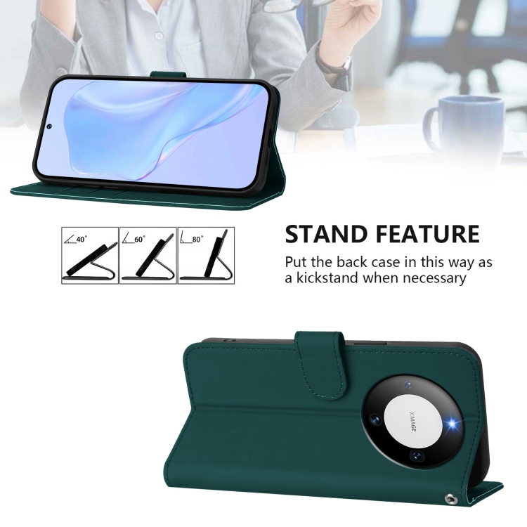 Funda de Piel Sintética con Cordón para Huawei Mate 60 con Tacto de Piel (Verde Oscuro)