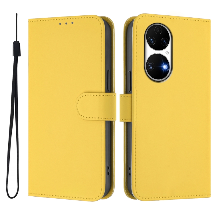 Funda de Piel Sintética con Cordón para Huawei P50 Skin Feel (Amarillo Limón)