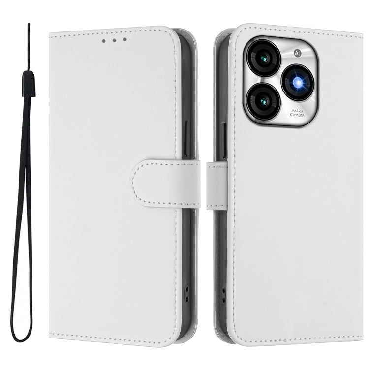 Funda de Piel Sintética con Cordón para Teléfono Itel A70 (Blanco) Tacto Suave