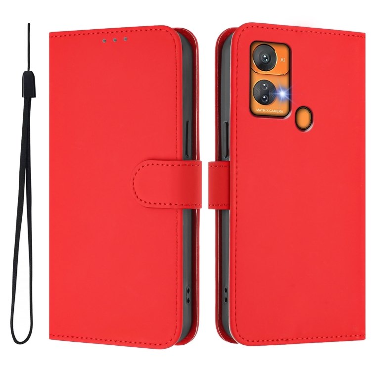 Funda Piel Sintética con Cordón para Teléfono Oukitel C33 (Rojo)