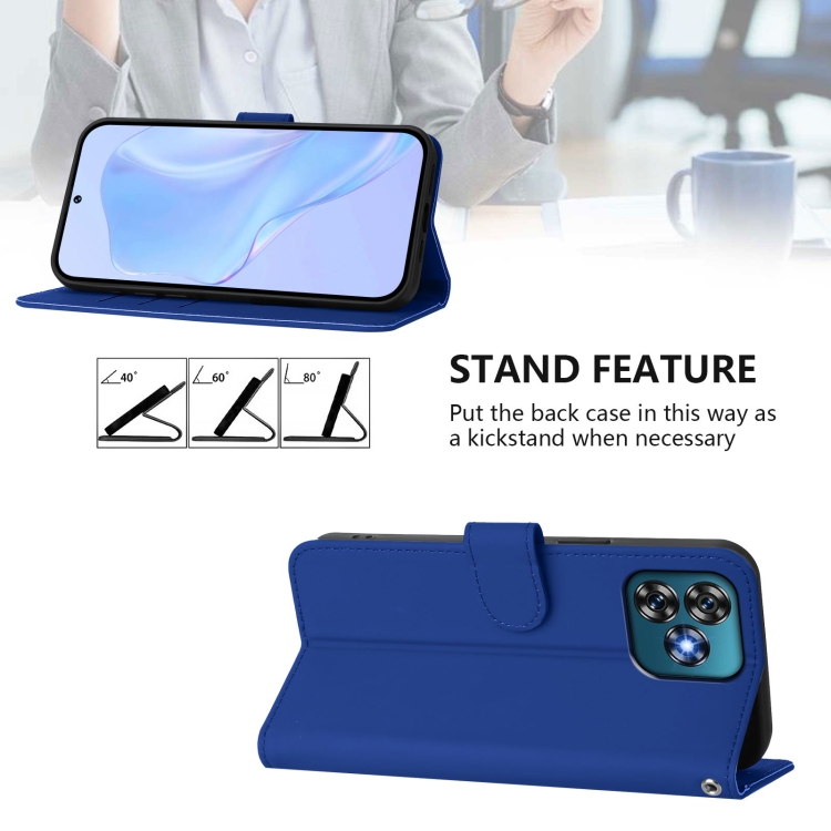 Funda de Piel Sintética con Cordón para Teléfono Oukitel C53 (Azul Oscuro)
