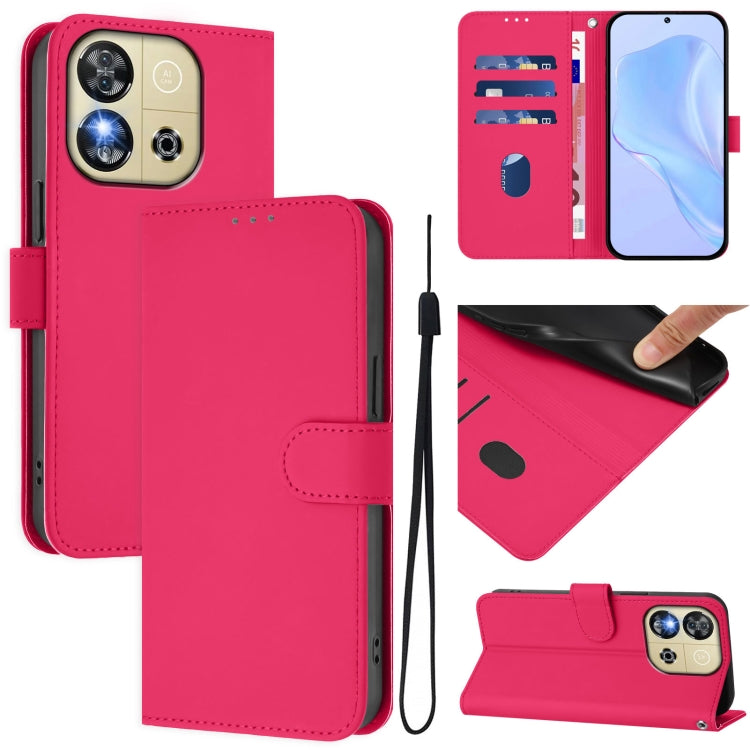 Funda de Piel Sintética con Cordón para Teléfono Oukitel C57S (Rosa y Rojo)