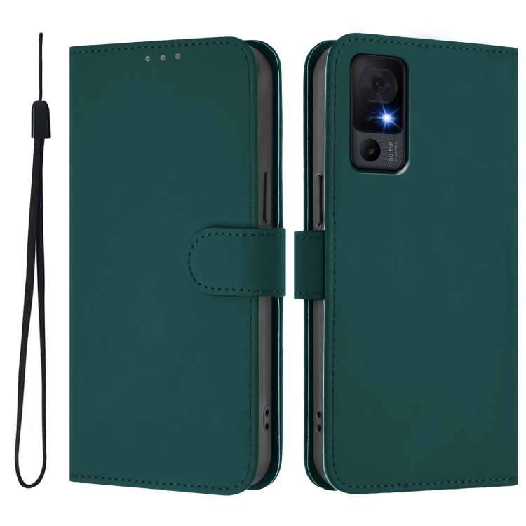 Funda de Piel Sintética con Cordón para Teléfono TCL 40 XL/40 T T608Dl (Verde Oscuro)