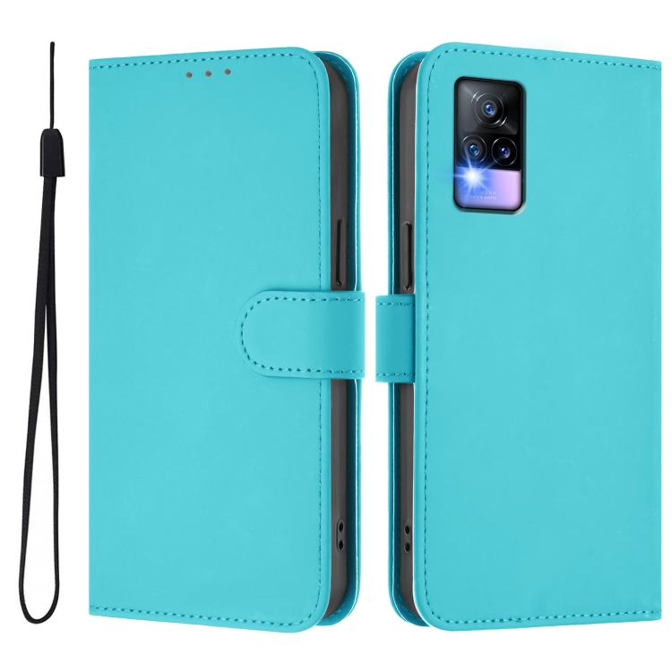 Funda de Piel Sintética con Cordón para Teléfono Vivo V20/V21E 4G/Y73 2021 (Azul Lago)