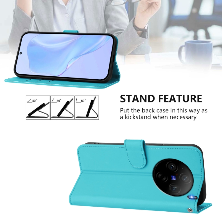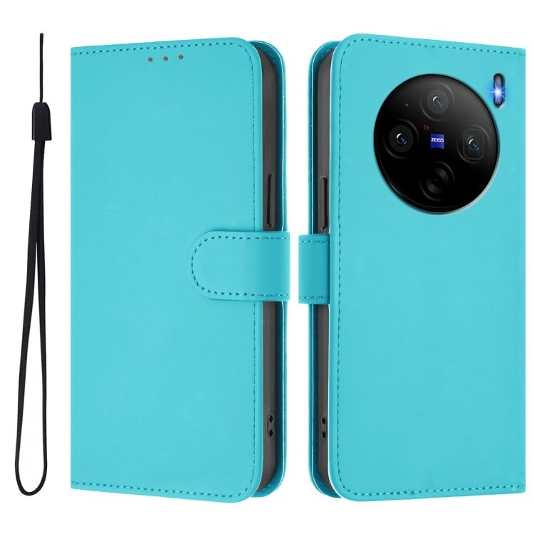 Funda de Piel Sintética con Cordón para Teléfono Vivo X100S 5G (Azul Lago)