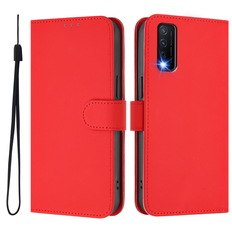 Funda de Piel Sintética con Cordón para Teléfono Vivo Y20 / Y20I / Y20S / Y11S (Color Sólido) (Rojo)