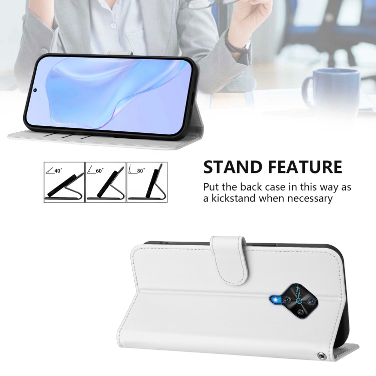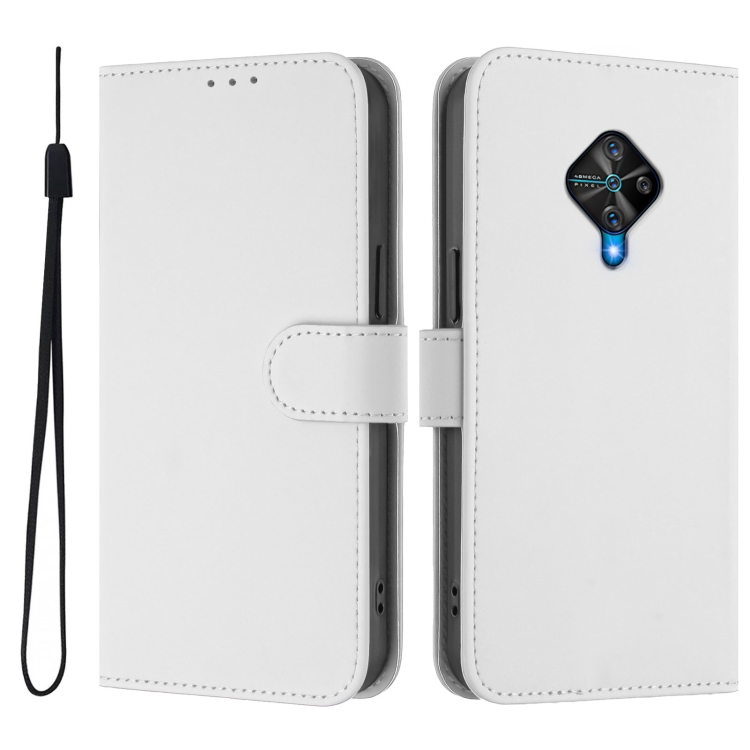 Funda de Piel Sintética con Cordón para Teléfono Vivo Y53S 4G/Y51A 2021 (Color Blanco)