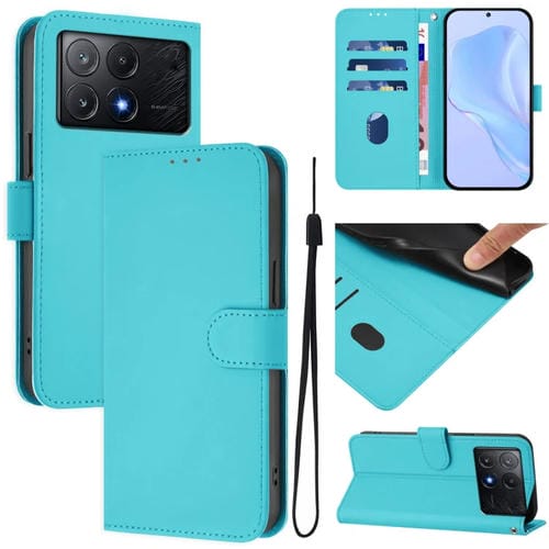 Funda de Piel Sintética con Cordón para Teléfono Xiaomi Poco X6 Pro (Azul Lago)
