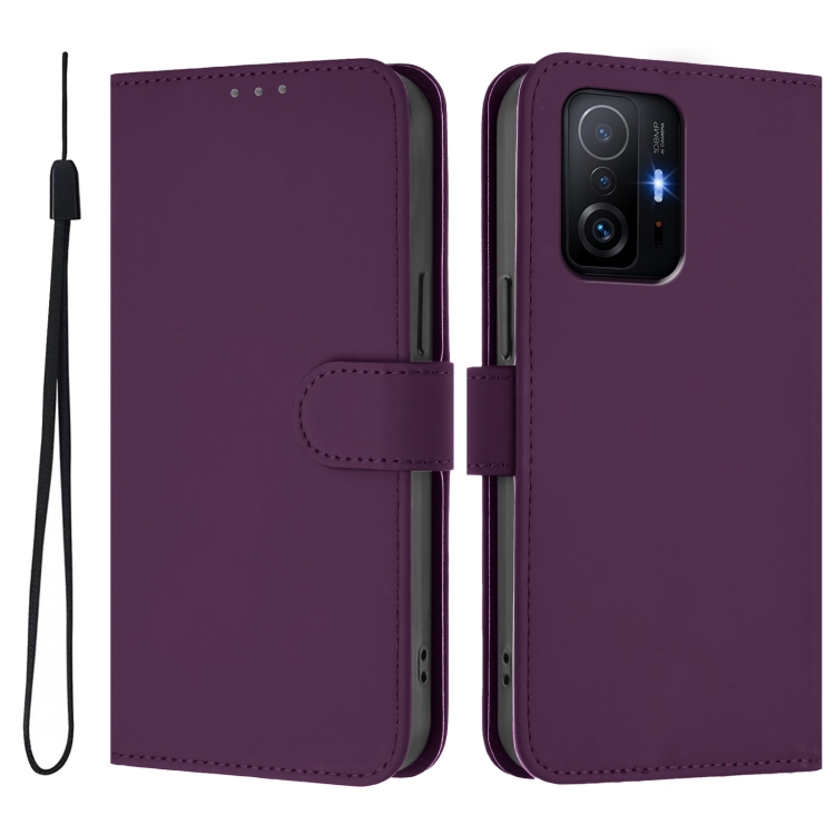 Funda de Piel Sintética con Cordón para Xiaomi 11T/11T Pro, Color Liso, con Tacto de Piel (Violeta)