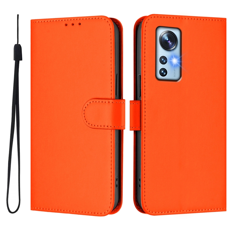 Funda de Piel Sintética con Cordón para Xiaomi 12 5G/12S 5G/12X 5G (Naranja)