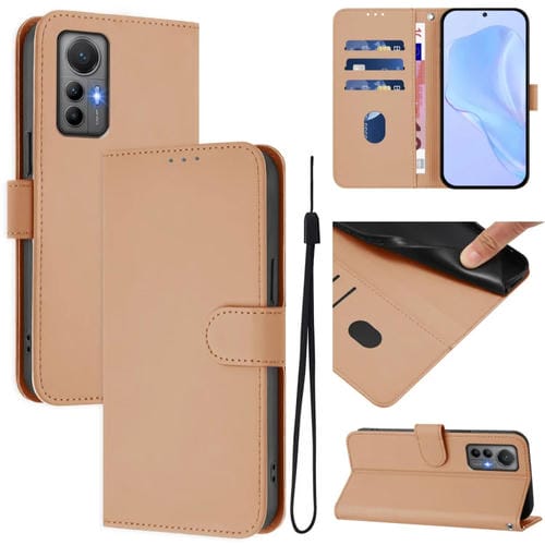 Funda de Piel Sintética con Cordón para Xiaomi 12 Lite, Color Liso, con Tacto de Piel (Desnudo)