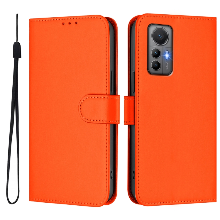 Funda de Piel Sintética con Cordón para Xiaomi 12 Lite, Color Liso, con Tacto de Piel (Naranja)