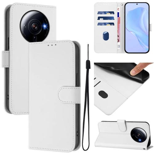 Funda de Piel Sintética con Cordón para Xiaomi 12S Ultra Skin Feel de Color Liso (Blanco)