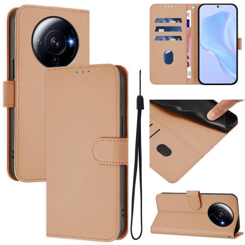 Funda de Piel Sintética con Cordón para Xiaomi 12S Ultra Skin Feel de Color Liso (Desnudo)