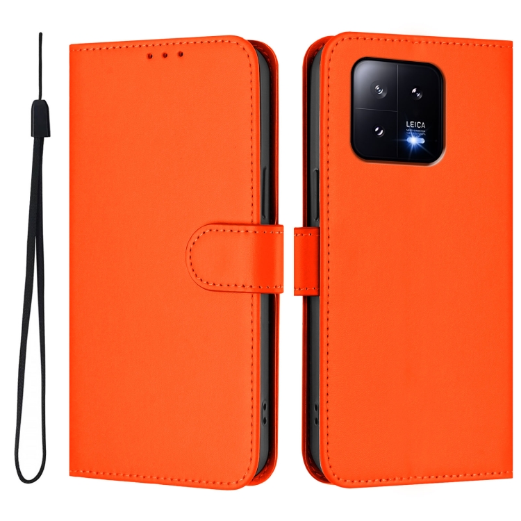 Funda de Piel Sintética con Cordón para Xiaomi 13 5G, Color Liso, con Tacto de Piel (Naranja)