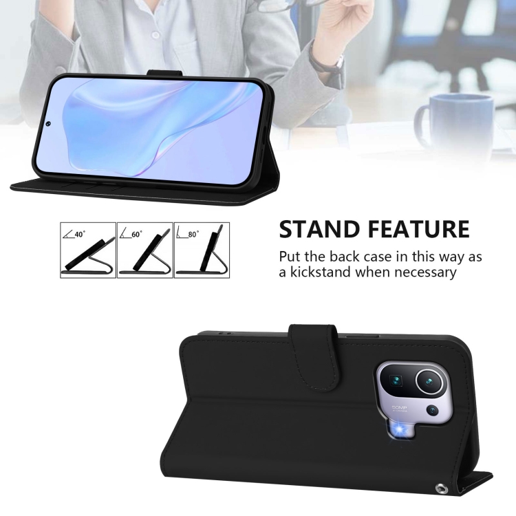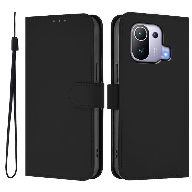 Funda de Piel Sintética con Cordón para Xiaomi Mi 11 Pro (Color Sólido) (Negro)
