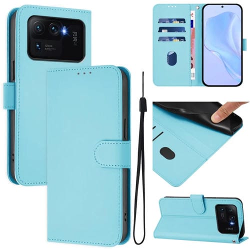 Funda de Piel Sintética con Cordón para Xiaomi Mi 11 Ultra Skin Feel de Color Liso (Azul Cielo)