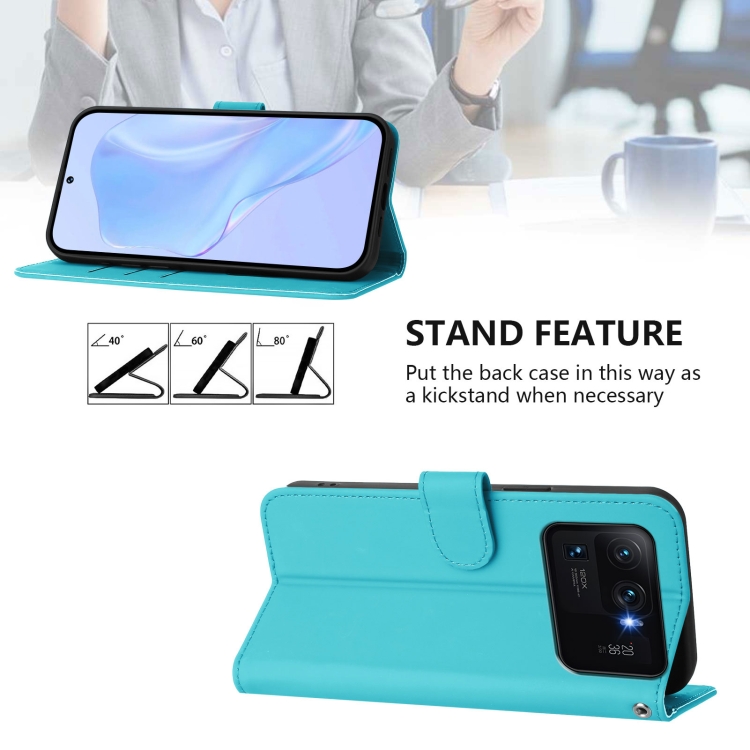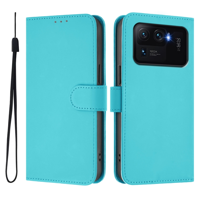 Funda de Piel Sintética con Cordón para Xiaomi Mi 11 Ultra Skin Feel de Color Liso (Azul Lago)