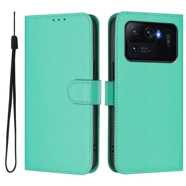 Funda de Piel Sintética con Cordón para Xiaomi Mi 11 Ultra Skin Feel de Color Liso (Verde)