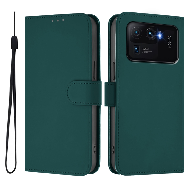 Funda de Piel Sintética con Cordón para Xiaomi Mi 11 Ultra Skin Feel de Color Liso (Verde Oscuro)