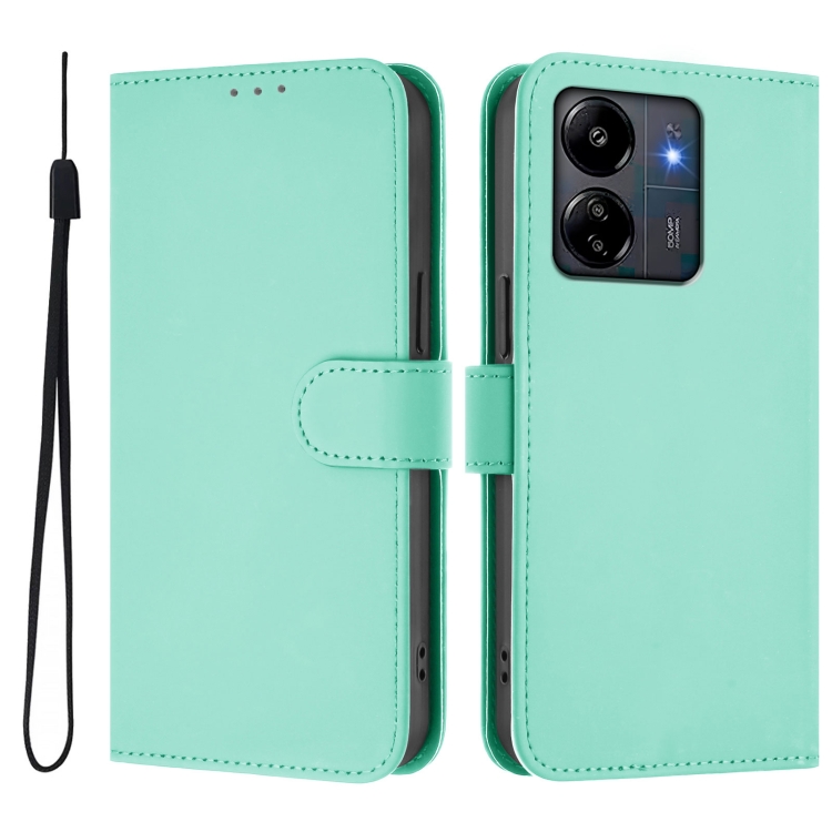 Funda de Piel Sintética con Cordón para Xiaomi Poco C6 Global / M6 5G Global (Verde Menta)