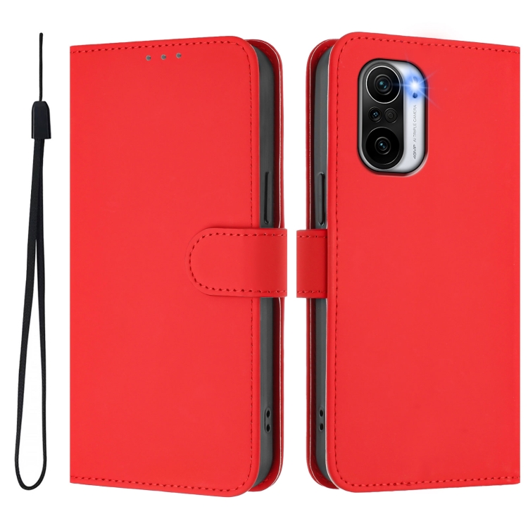 Funda de Piel Sintética con Cordón para Xiaomi Poco F3 (Color Sólido) (Rojo)