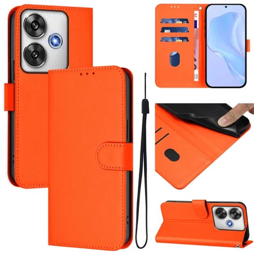 Funda de Piel Sintética con Cordón para Xiaomi Poco F6 5G (Naranja)