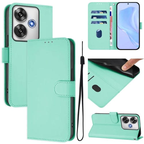 Funda de Piel Sintética con Cordón para Xiaomi Poco F6 5G (Verde Menta)