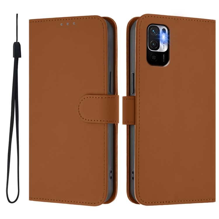 Funda de Piel Sintética con Cordón para Xiaomi Poco M3 Pro (Marrón)