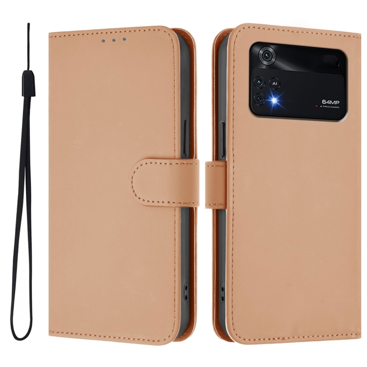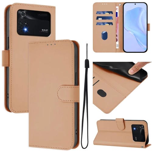 Funda de Piel Sintética con Cordón para Xiaomi Poco M4 Pro 4G (Color Piel)