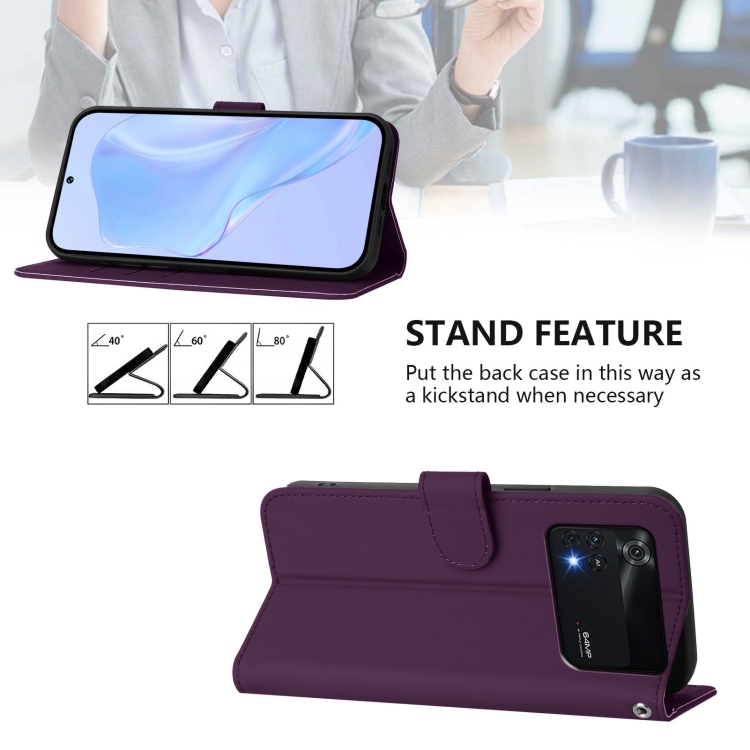 Funda de Piel Sintética con Cordón para Xiaomi Poco M4 Pro 4G (Violeta)