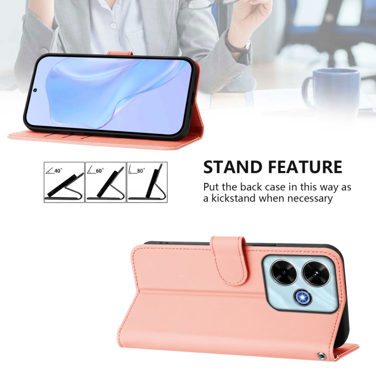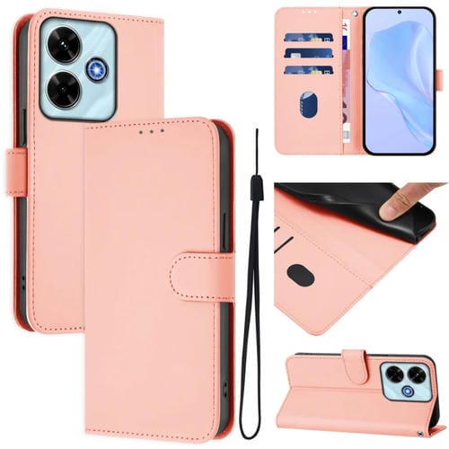Funda de Piel Sintética con Cordón para Xiaomi Poco M6 4G (Rosa)