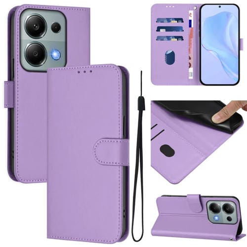 Funda de Piel Sintética con Cordón para Xiaomi Poco M6 Pro 4G (Morado Lavanda)