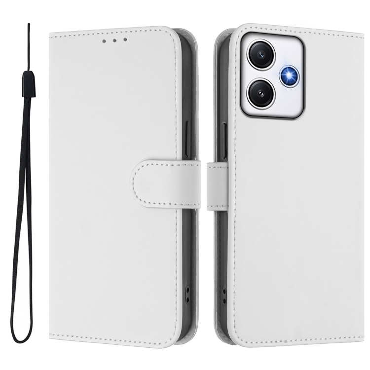 Funda de Piel Sintética con Cordón para Xiaomi Poco M6 Pro 5G (Color Blanco)