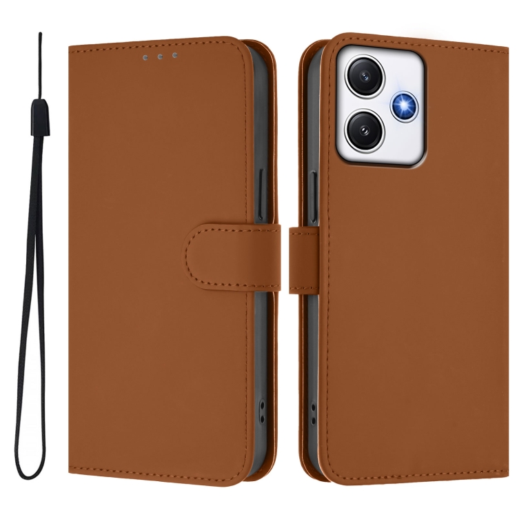 Funda de Piel Sintética con Cordón para Xiaomi Poco M6 Pro 5G (Marrón)