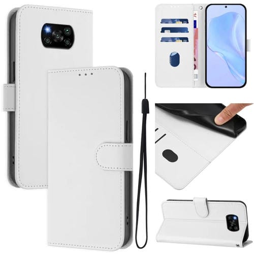 Funda de Piel Sintética con Cordón para Xiaomi Poco X3 Pro / X3 Nfc / X3 (Color Blanco)