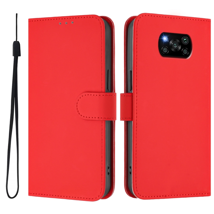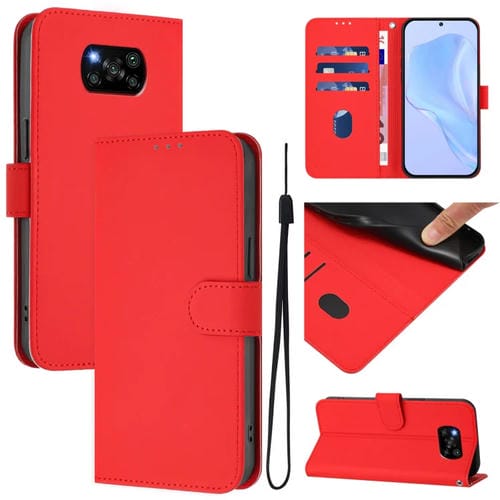 Funda de Piel Sintética con Cordón para Xiaomi Poco X3 Pro / X3 Nfc / X3 (Color Sólido) (Rojo)