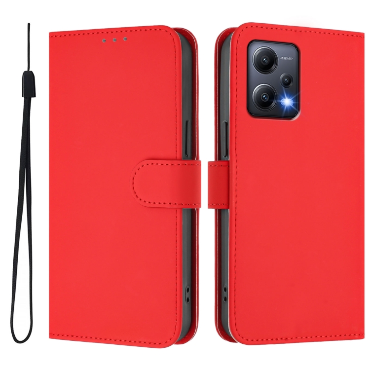 Funda de Piel Sintética con Cordón para Xiaomi Poco X5 (Color Sólido) (Rojo)
