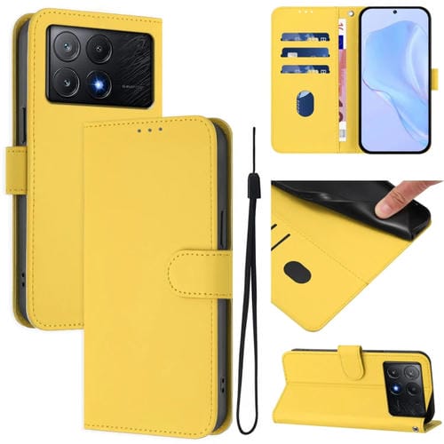 Funda de Piel Sintética con Cordón para Xiaomi Poco X6 Pro (Amarillo Limón)