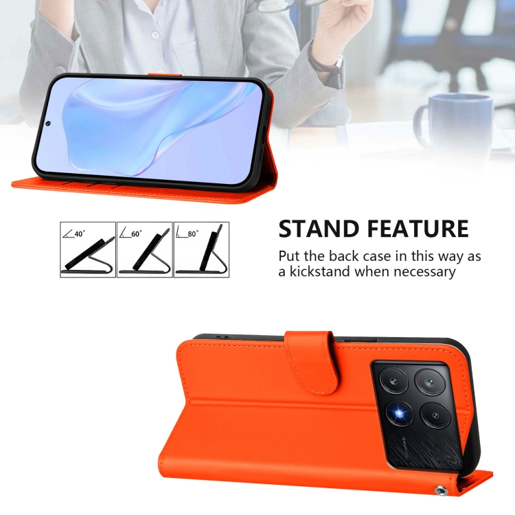 Funda de Piel Sintética con Cordón para Xiaomi Poco X6 Pro (Naranja)