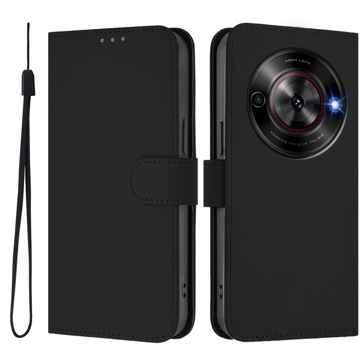 Funda de Piel Sintética con Cordón para ZTE Blade A75 5G (Negro)
