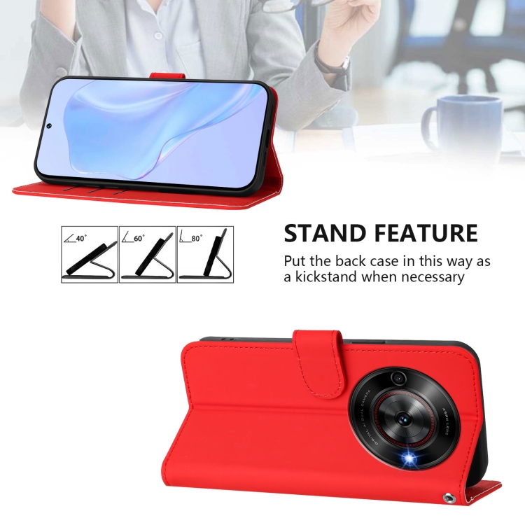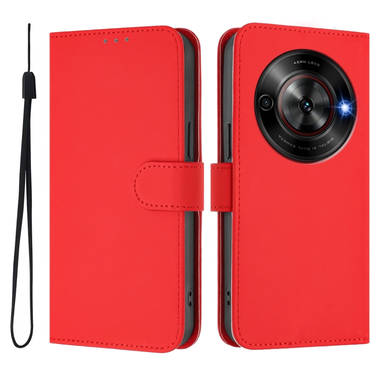 Funda de Piel Sintética con Cordón para ZTE Blade A75 5G (Rojo)