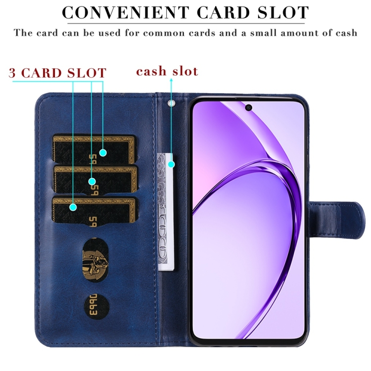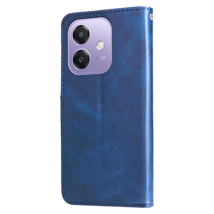 Funda de Piel Sintética con Cremallera y Textura de Becerro para Oppo A3X 4G/A3X 5G (Azul)