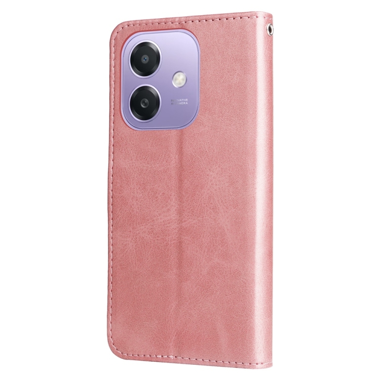 Funda de Piel Sintética con Cremallera y Textura de Becerro para Oppo A3X 4G/A3X 5G (Oro Rosa)