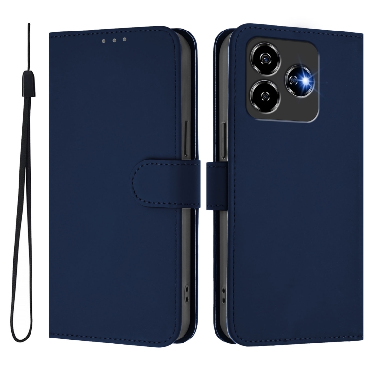 Funda de Piel Sintética para ZTE Blade V60 con Diseño Liso y Cordón (Azul Marino)