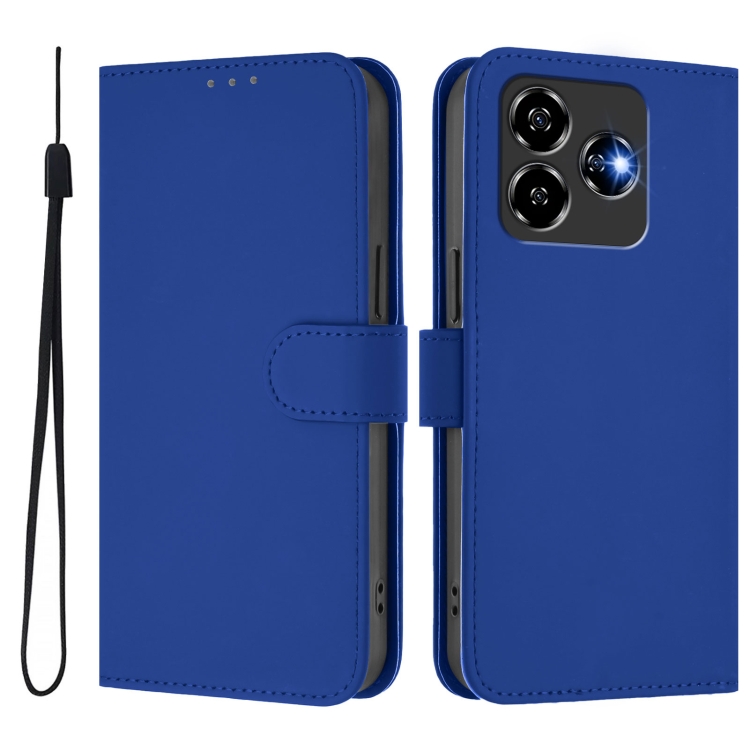 Funda piel sintética ZTE Blade V60 diseño liso con cordón (Azul Oscuro)