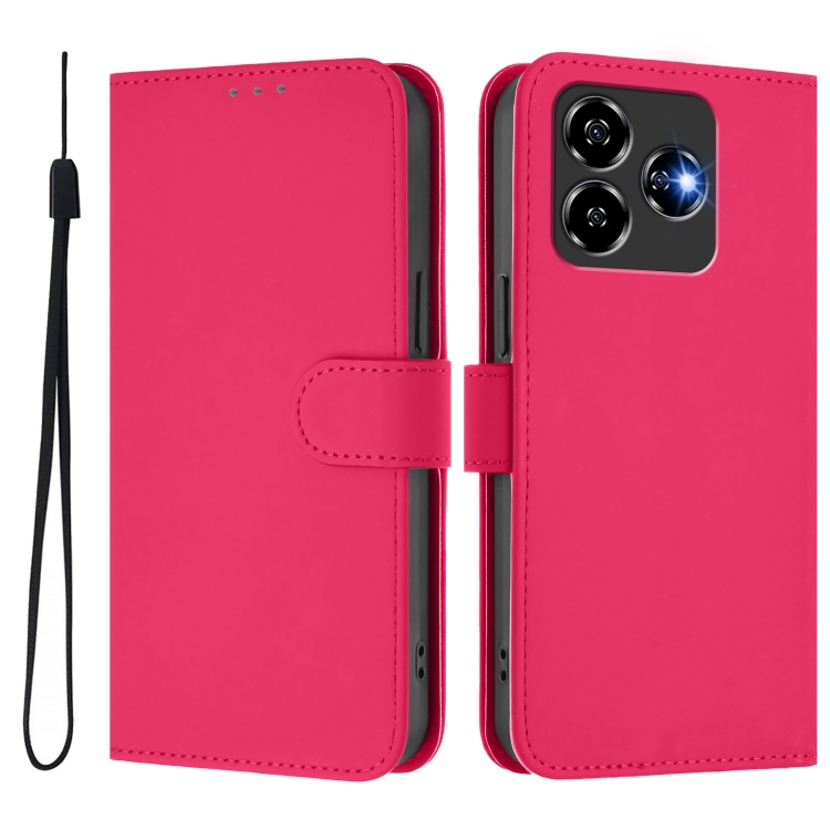 Funda de Piel Sintética para ZTE Blade V60 con Diseño Liso y Cordón (Rosa y Rojo)